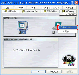 「プラグアンドプレイモニタとVIA/S3G UniChromePro IGPのプロパティ」画面が表示されます。