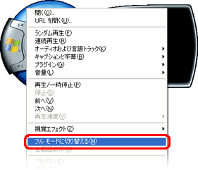 元の見た目に戻すには、Windows Media Playerの画面を右クリックし、「フル モードに切り替える」をクリックします。
