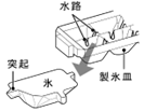 また、製氷皿を回転させて氷を落とす(離氷)動作のばらつきにより、製氷皿の水路部分が一部つながったままになることがあります。