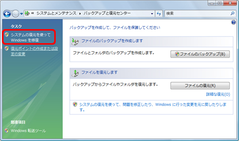 システムの復元を実行すると、ハードディスク内の情報の整合性に問題が発生し、システムが不安定になる場合があります。 システムの復元を実行する前には必ず大切なデータをバックアップしてください。