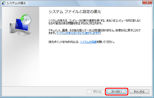 システムの復元を実行するには、以下の手順に従って操作してください。