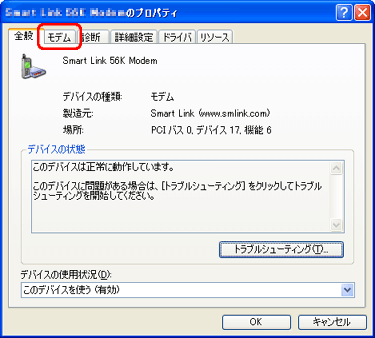 「モデム」タブをクリックします。