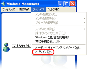 - 「Windows Messenger」画面で「ツール」をクリックし、「オプション」をクリックします。