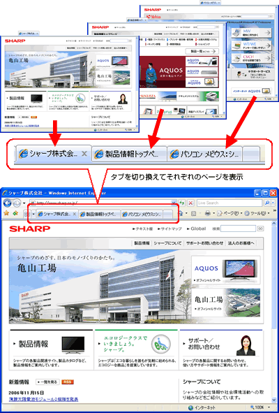 タブブラウザは、Internet Explorer 7から搭載された新しい機能です。
