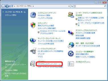 - プログラム内の「プログラムのアンインストール」をクリックします。