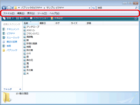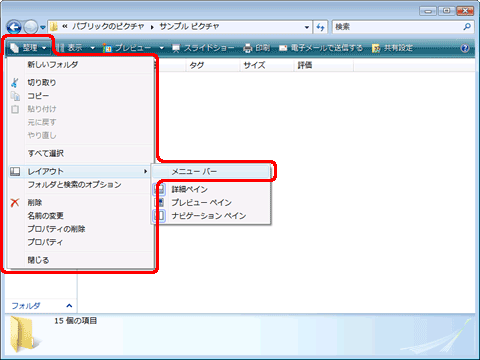 WindowsVistaのエクスプローラにはメューバーが無いのですか?