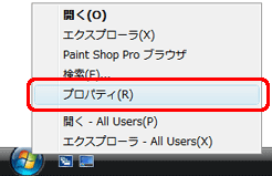 [スタート]ボタンを右クリックし、表示されたメニューから[プロパティ]をクリックします。