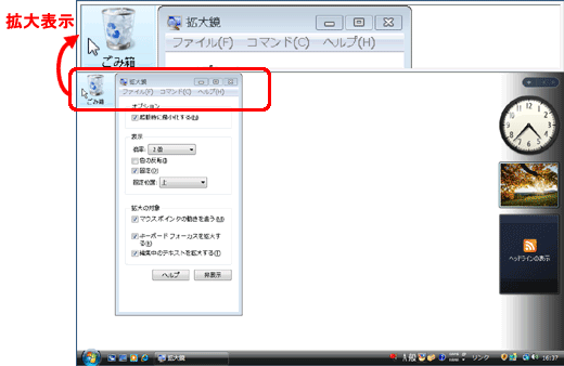 画面の一部分だけを拡大して表示するには?(Windows Vista)
