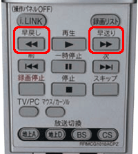 - リモコンのフタを開け、[早戻し]と[早送り]を同時に押します。