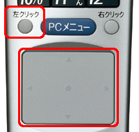 リモコンのタッチパッドでドラッグするには、マウスポインターの位置を確かめて、[左クリック]を押しながらパッドに指を触れ、そのまま移動したい方向に動かします。両手での操作になります。
