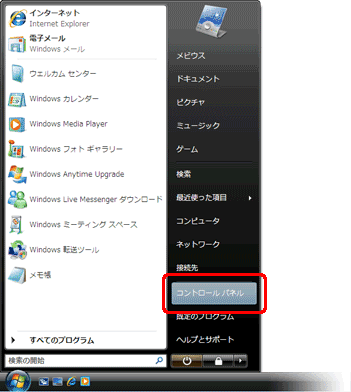 - [スタート]をクリックし、「コントロール パネル」をクリックします。