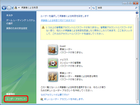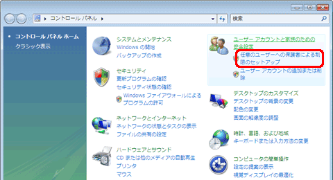 - 「任意のユーザーへの保護者による制限のセットアップ」をクリックします。