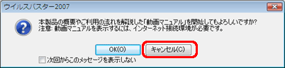次の画面が表示されたときは、[キャンセル]をクリックしてください。