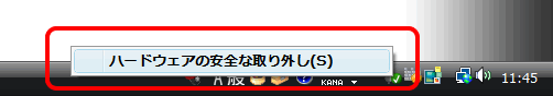 - Windows Vistaでハードウェアの安全な取り外しアイコンをクリックしても、対象のデバイスを正常に取り外せないことがある
