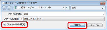 「添付ファイルに名前を付けて保存」画面が表示されます。