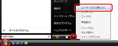 ログオフしないでユーザーを切り替えるには、以下の手順に従って操作してください。