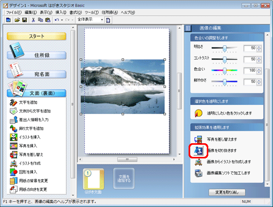 年賀状に使う写真を必要な部分だけ切り取りたい(はがきスタジオ Basic 2007)