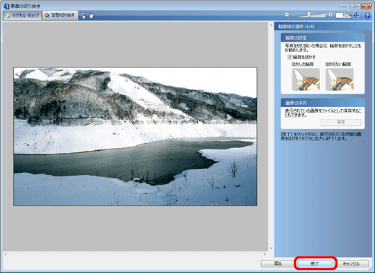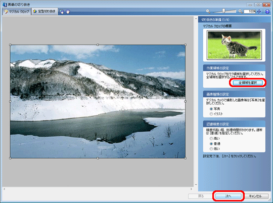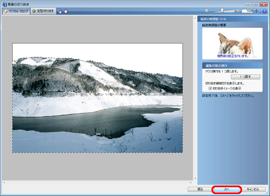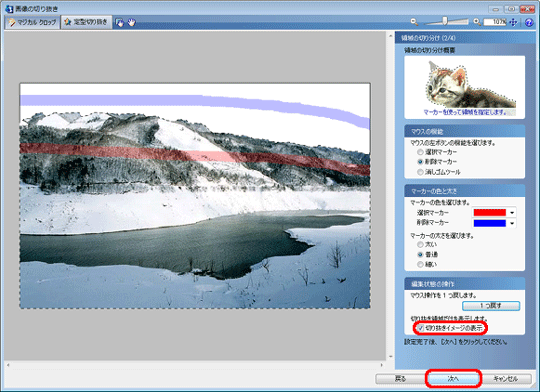 「切り抜きイメージの表示」にチェックをつけて画像を確認し、[次へ]をクリックします。