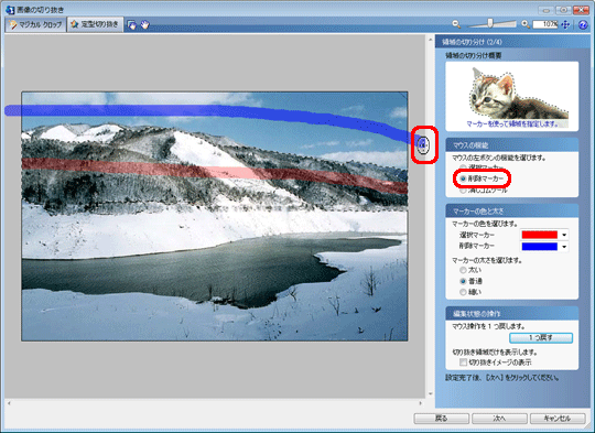 「削除マーカー」を選択し、削除したい領域をマウスでなぞります。