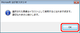 選択した画像データが大きすぎる場合は次のような画面が表示されますので、[OK]をクリックします。
