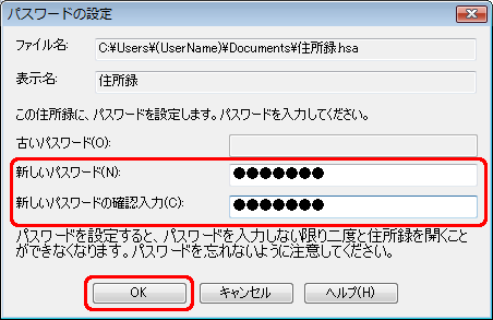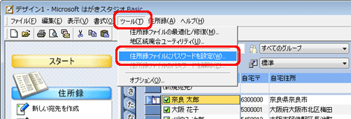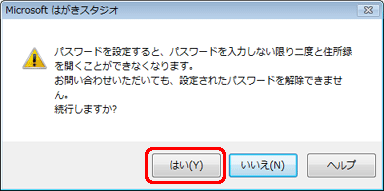 以上の操作で、はがきスタジオ Basic 2007の住所録にパスワードが設定できます。