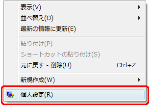 表示されたメニューの「個人設定」をクリックします。