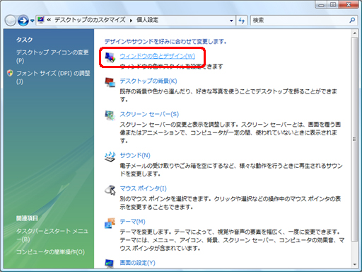 「ウィンドウの色とデザイン」をクリックします。