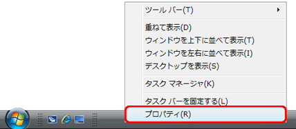 - タスクバーを右クリックし、「プロパティ」をクリックします。