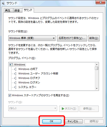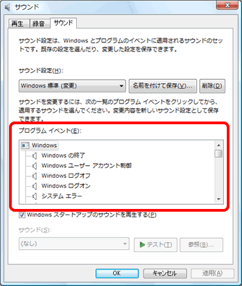 以上の操作で、Windows Vistaのシステムが出す音を変更できます。
