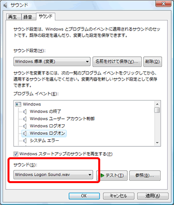 Windows Vistaのログオン時など、システムが出す音を変更することができます。