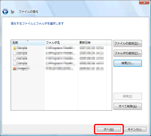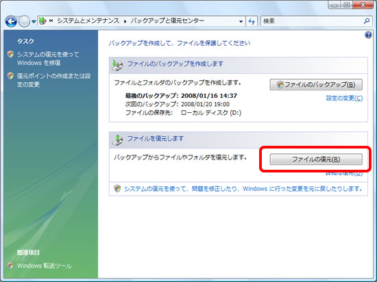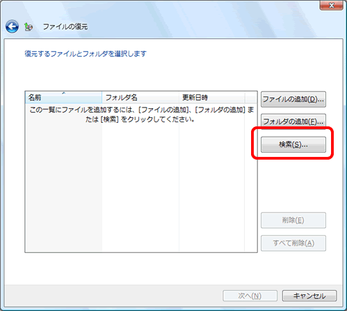 「バックアップの作成」で作成されたバックアップデータから、ファイル名を検索して復元したい(Windows Vista)