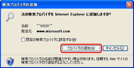 「検索プロバイダをInternet Explorer 7に追加する」画面が表示されます。