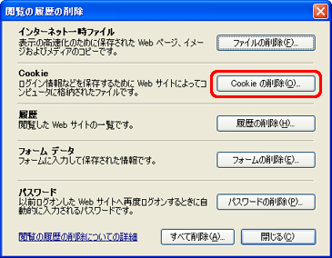 「Cookie」欄の[Cookieの削除]をクリックします。