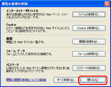 [閉じる]をクリックし、「閲覧の履歴の削除」画面を閉じます。