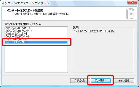 登録した「フィード」をバックアップするには?(Internet Explorer 7/Windows Vista)