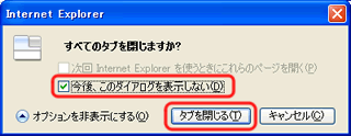 複数のタブを表示したままでInternet Explorer 7を終了するとき、「すべてのタブを閉じますか?」という確認メッセージが表示されます。
