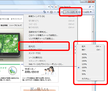 Internet Explorer 7のズーム機能を使うと、ホームページの文字や画像を、拡大/縮小して表示できます。