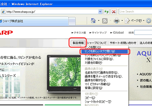 リンク先を新しいタブで開くには?(Internet Explorer 7)