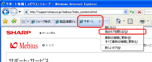 他のタブをすべて閉じるには?(Internet Explorer 7)