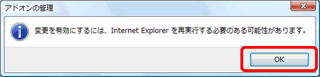 「アドオンで問題が発生したため、InternetExplorerを閉じる必要があります」と表示される(Internet Explorer 7)