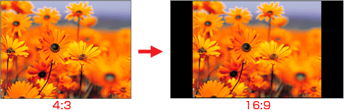 「4:3」の画面比率(アスペクト比)で取り込んだ映像は、映像を拡張したり上下をカットすることなく、元映像の画面比率(アスペクト比)を維持したままで「16:9」のワイド映像に変換することができます。