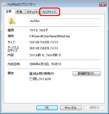 「(選択したフォルダ)のプロパティ」画面が表示されます。