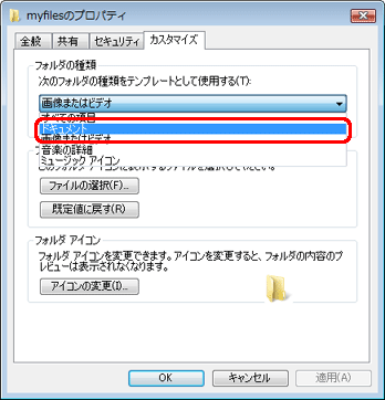「フォルダの種類」欄からフォルダの種類を選択します。