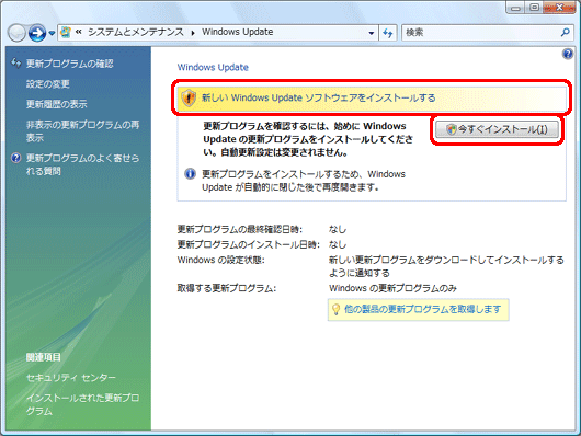 「新しいWindows Updateソフトウェアをインストールする」