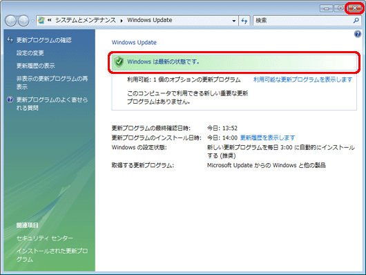 Windows Updateを実行する必要がありません。[×]をクリックして「Windows Update」画面を閉じます。