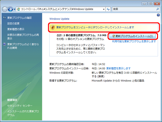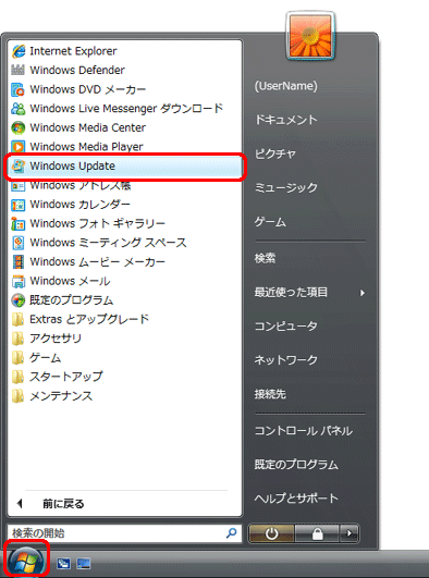 Windows Updateを実行するには?(Windows Vista)
