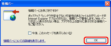 「情報バー」画面が表示された場合は、[OK]をクリックします。