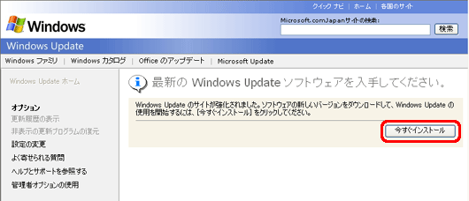 「最新のWindows Updateソフトウェアを入手してください」と表示されます。