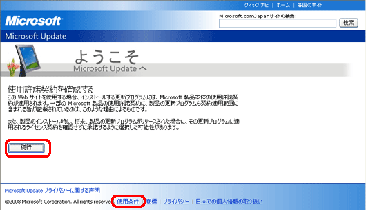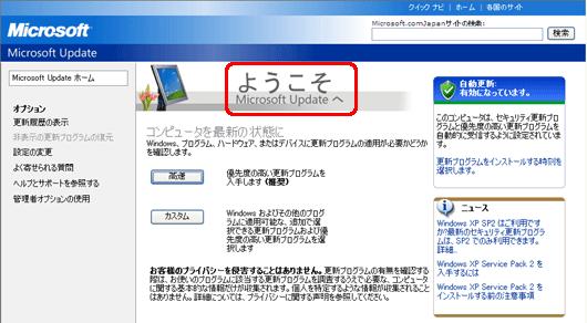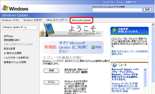 Microsoft Updateを使用するには、以下の手順に従って操作してください。