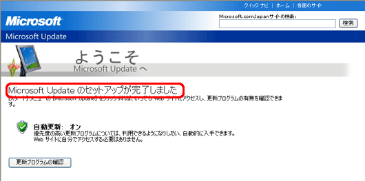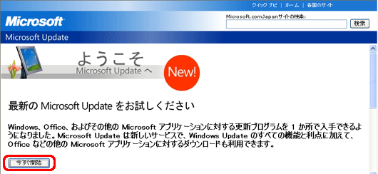 「ようこそMicrosoft Updateへ」と表示された場合は、Microsoft Updateを使用するようにすでに設定されています。[×]をクリックして画面を閉じてください。
